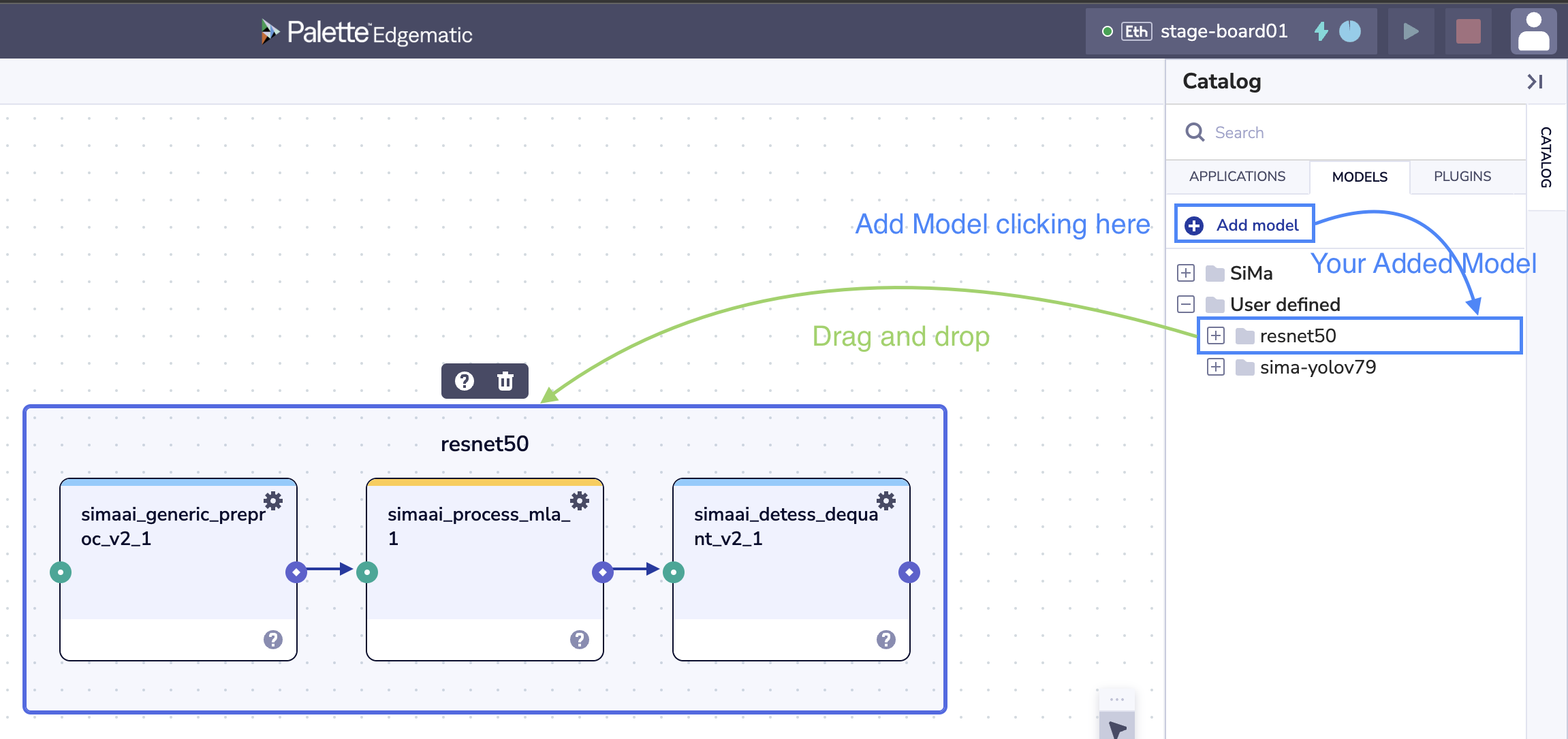 .tar.gzmodel file into your project using the +Add Model button. You can import it from: