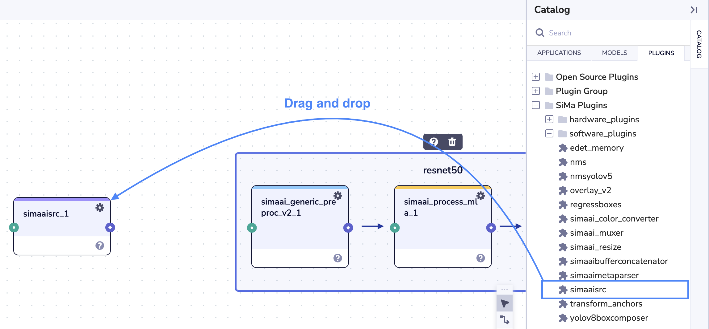 simaaisrcplugin. This plugin operates similarly to the standardfilesrcandmultifilesrcplugins but optimized for SiMa MLA. It serves as a source element that reads data from files and feeds it into a GStreamer pipeline. This functionality is particularly useful for testing and debugging, as it allows developers to simulate various input scenarios by sourcing data from files, thereby facilitating isolated testing of individual components within a pipeline.