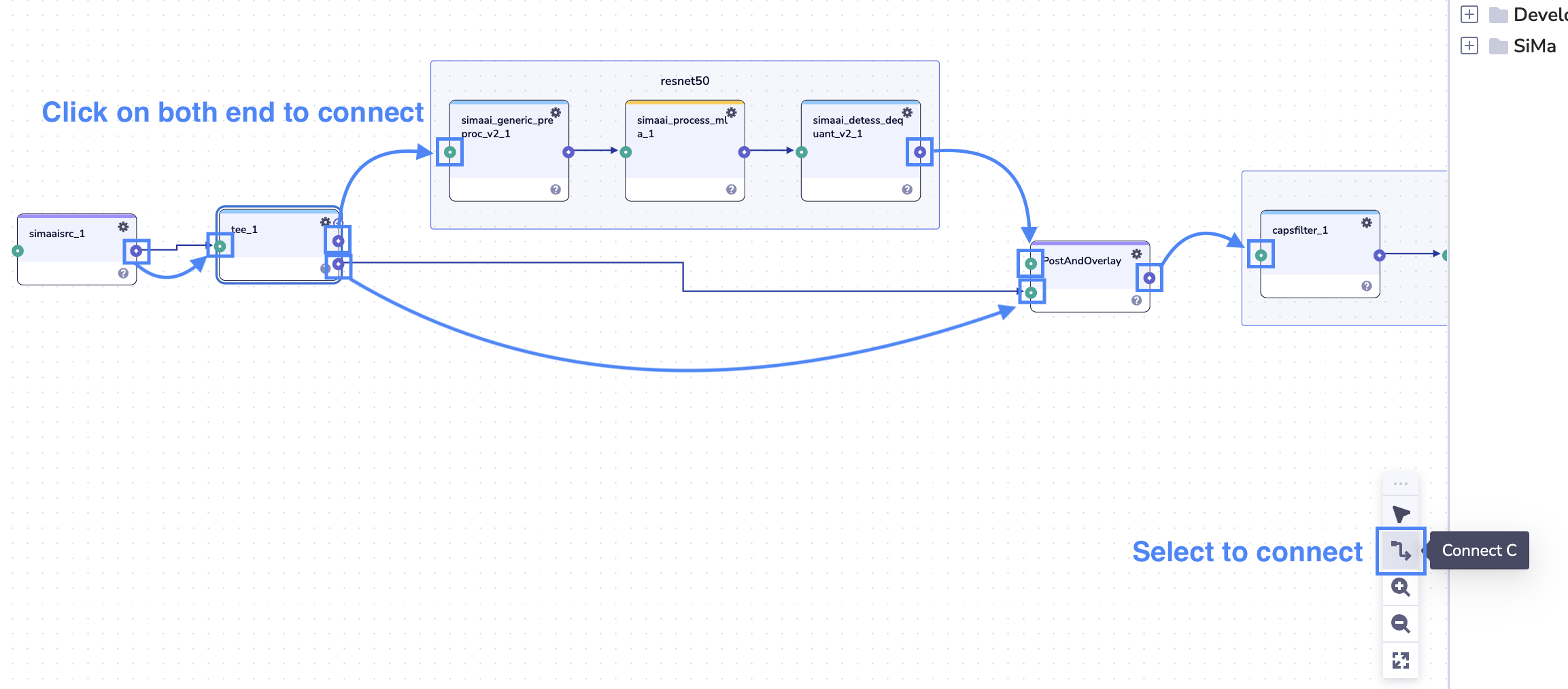 GStreamer pipeline is the core framework for integrating models, data streams, and SiMa hardware. Let’s start with a ResNet50 classification pipeline example to learn how to configure components and establish a workflow for building EdgeMatic applications.