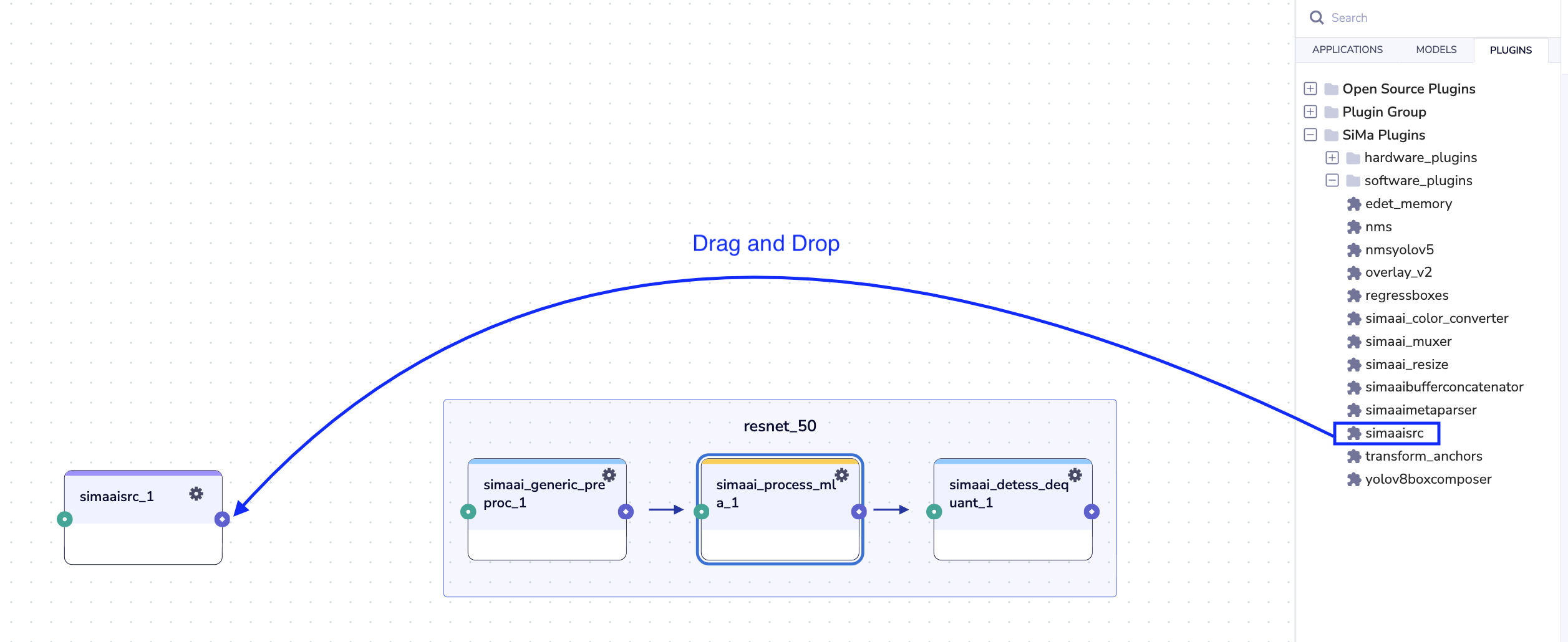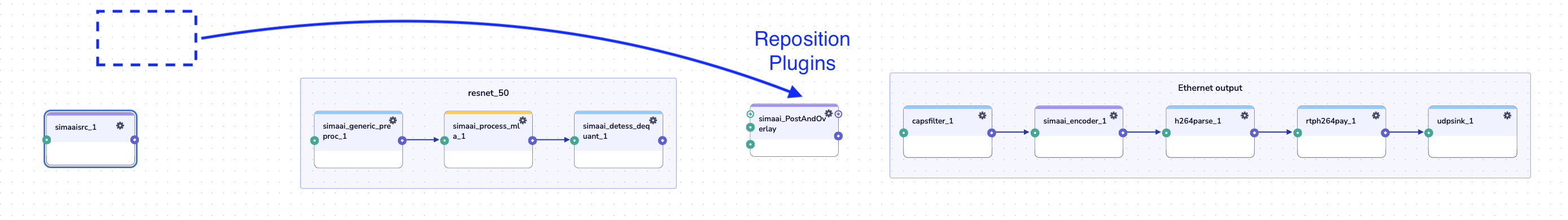 To faciliate with file operations, SiMa provides the simaaisrc plugin. This plugin operates similarly to the standard filesrc and multifilesrc plugins but optimized for SiMa MLA. It serves as a source element that reads data from files and feeds it into a GStreamer pipeline. This functionality is particularly useful for testing and debugging, as it allows developers to simulate various input scenarios by sourcing data from files, thereby facilitating isolated testing of individual components within a pipeline.