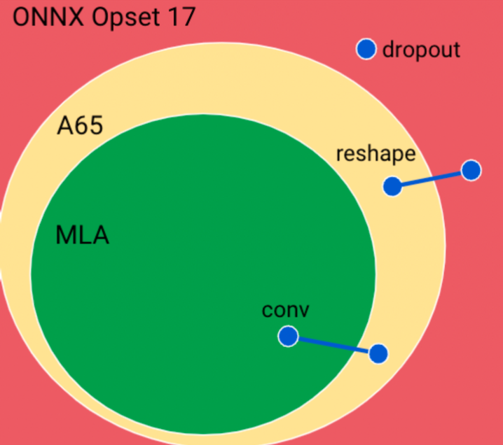 Virtually all operators in categories 2 and 3 above also have instantiations which are not supported. This is true even for relatively simple operators. For example, depending on the tensor element type used, the Add operator is either supported on the MLA or only supported on the A65, or not supported.